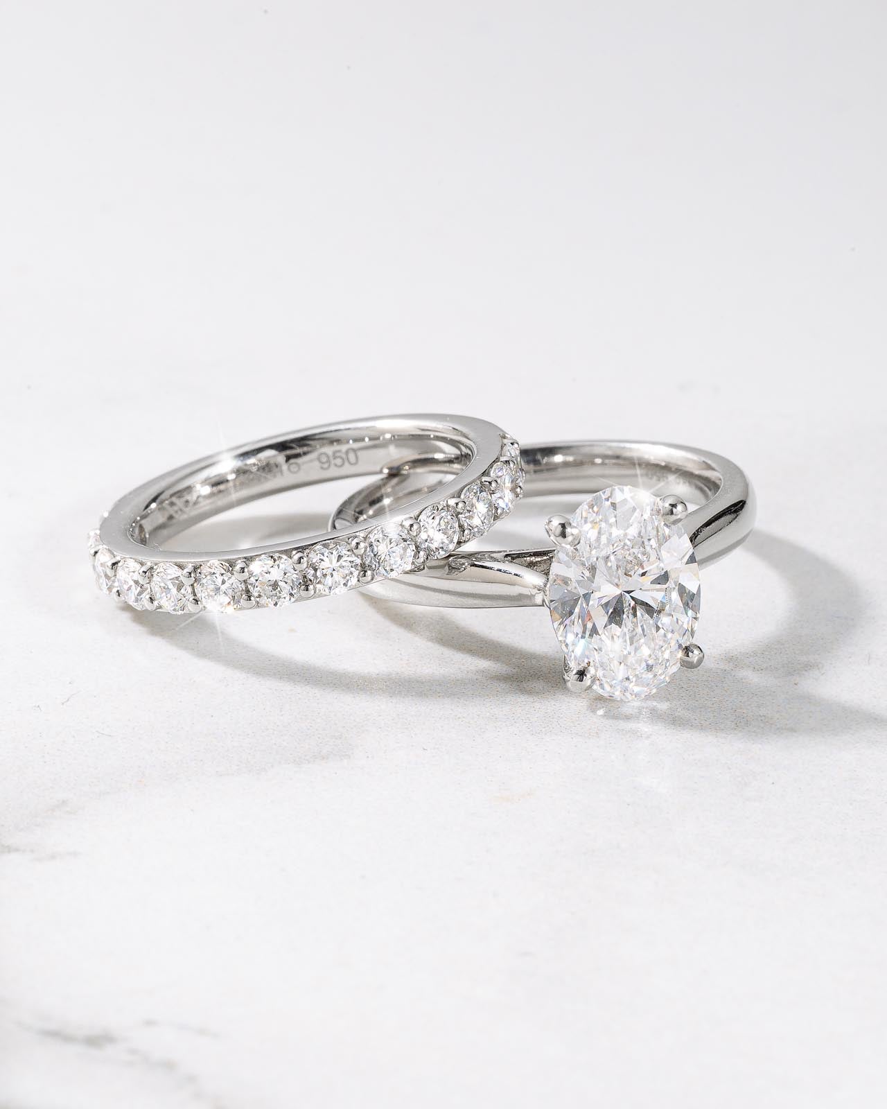 This 2ct Lab Diamond Solitaire Ring features an oval IGI certified lab grown diamond set in a 4 claw tulip setting on a Platinum band (2.5mm). Designed with a high setting that is ideal for a flush wedding band fit. Secure yours today with a deposit. Please allow 3 weeks for delivery
